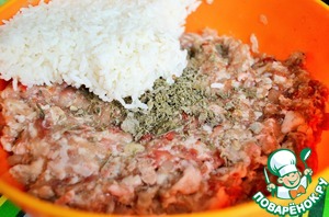 Отдельно сварить с вечера замоченный нут и рис. Вмешать в фарш, добавить сушеную мяту.
