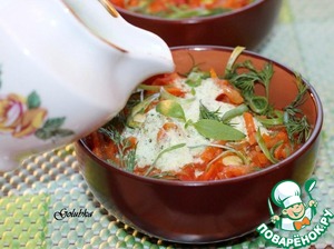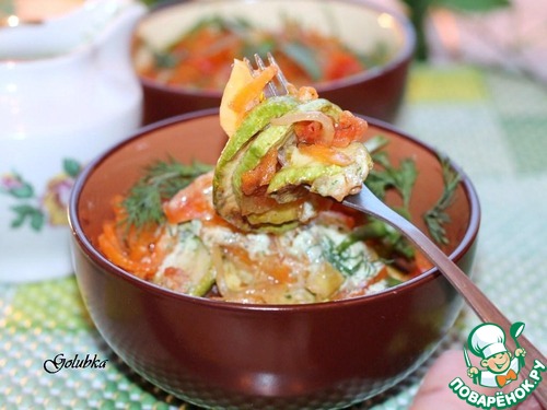 14. А за столом полить овощи чесночно-укропным соусом. Кабачки можно подавать как в теплом, так и в охлажденном виде.