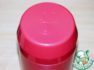 3. Налить в йогуртницу-термос воду t 100 С до указанной отметки. Затем погрузить литровую емкость с молочной смесью в термос.