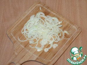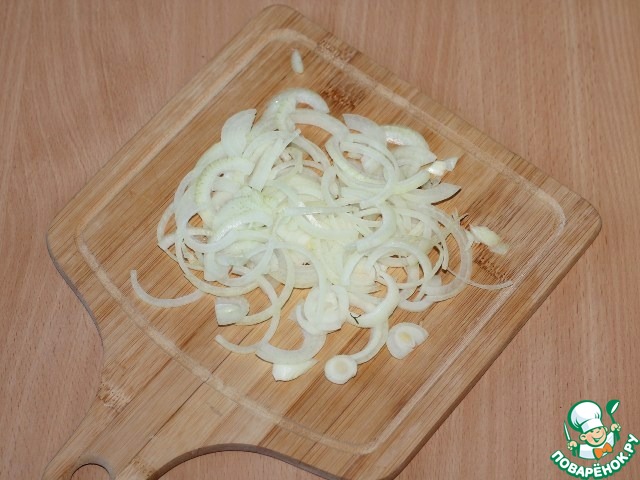 8. Пассеровать порезанный полукольцами лук до золотистого цвета.