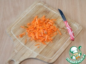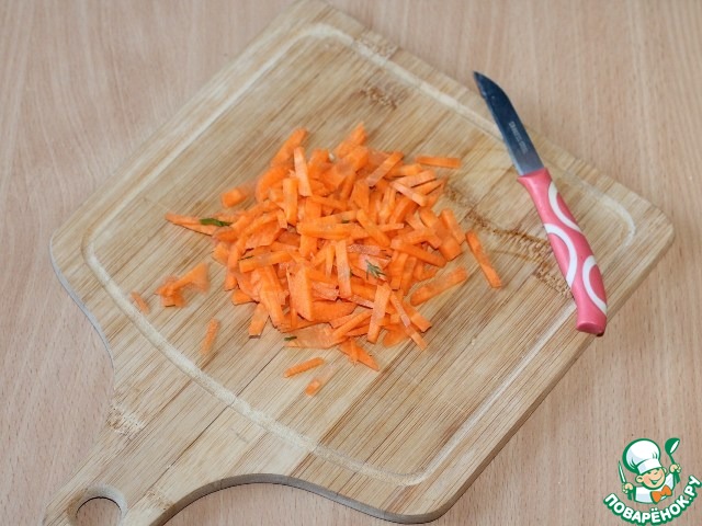 9. Затем добавить в сковороду нарезанную соломкой морковь