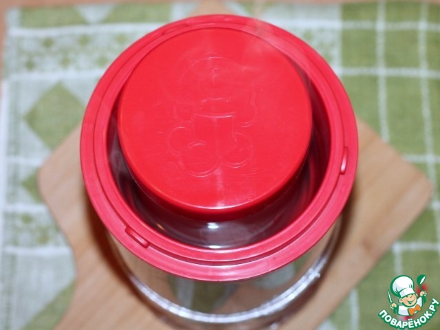 3. Налить в йогуртницу-термос воду t 100 С до указанной отметки. Затем погрузить литровую емкость с молочной смесью в термос. Закрыть крышку термоса. Поставить термос в теплое место на 6-10 часов. По истечении этого времени, открыть крышку термоса, достать литровую емкость и дать ей остыть.