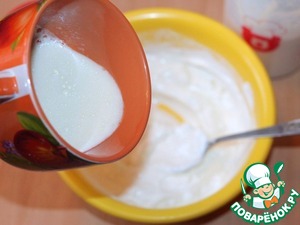 12. В большую миску выложите творог (180 г) и вылейте кефир (110 мл). Хорошо перемешайте творожную массу до однородности.