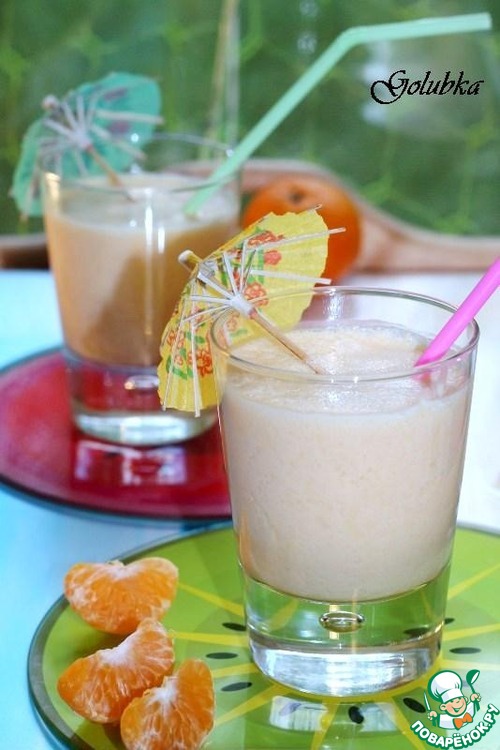 • 4. Приготовим коктейль. Мандарины очистите от кожуры, разделите на дольки и снимите с каждой дольки кожицу. Положите мякоть в чашу блендера.
