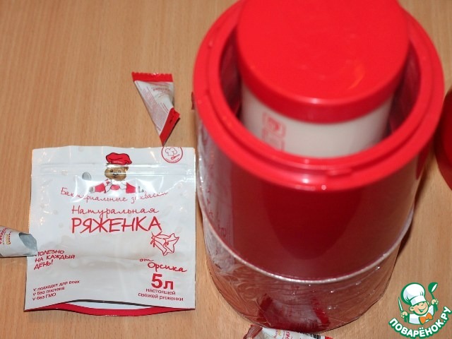 1. Приготовим ряженку из закваски от "Orsikа". Ряженку и творог, я готовила в йогуртнице-термосе Oursson.