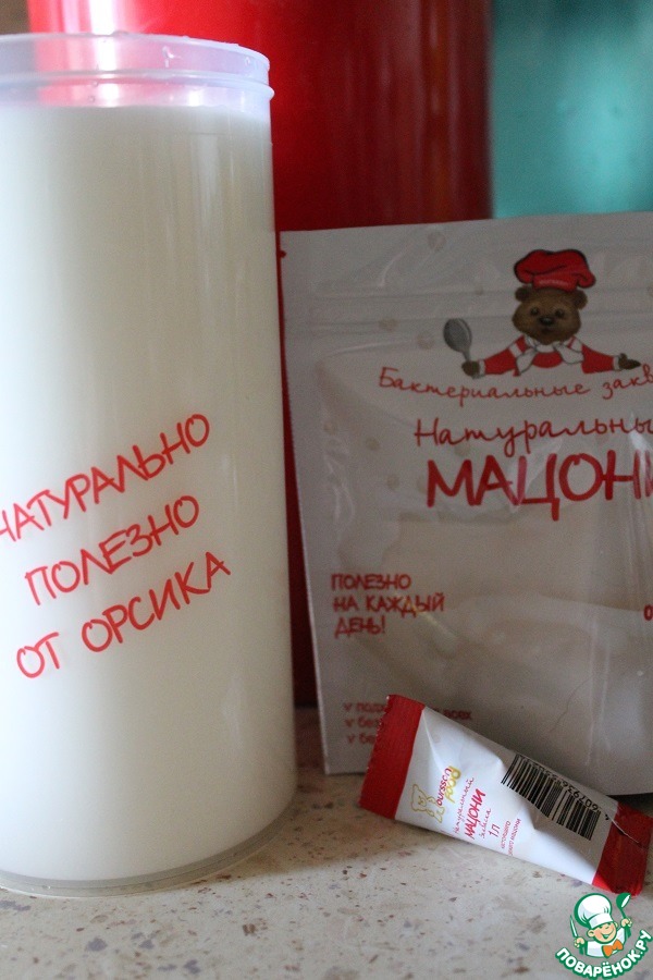 Для приготовления мацони, молоко подогреть до комнатной температуры, добавить закваску, перемешать в течении 2 минут, до полного ее растворения. Перелить в стакан. В термос-йогуртницу налить кипятка и поставить стакан с молоком и закваской. Оставить на 10 часов, для сквашивания.