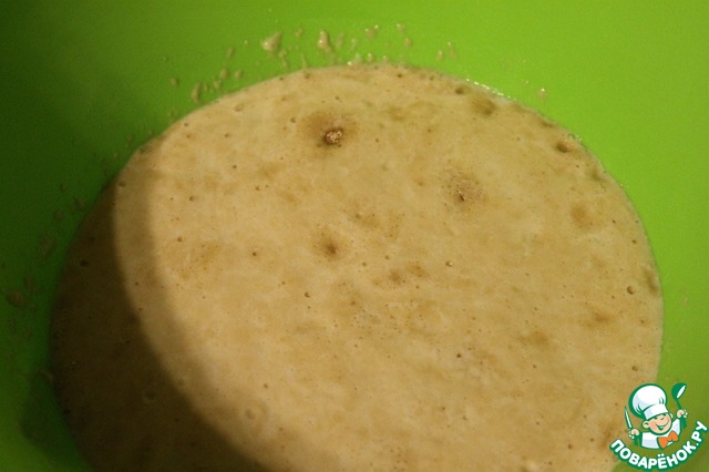Смешать все ингредиенты для опары, накрыть полотенцем и оставить в теплом месте на 15-20 минут.