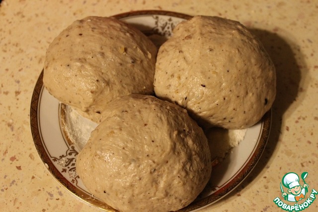 Замесить тесто и скатать его в шар. Оставить в теплом месте на 1,5 часа. Один раз обмять, за все это время.
