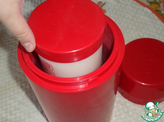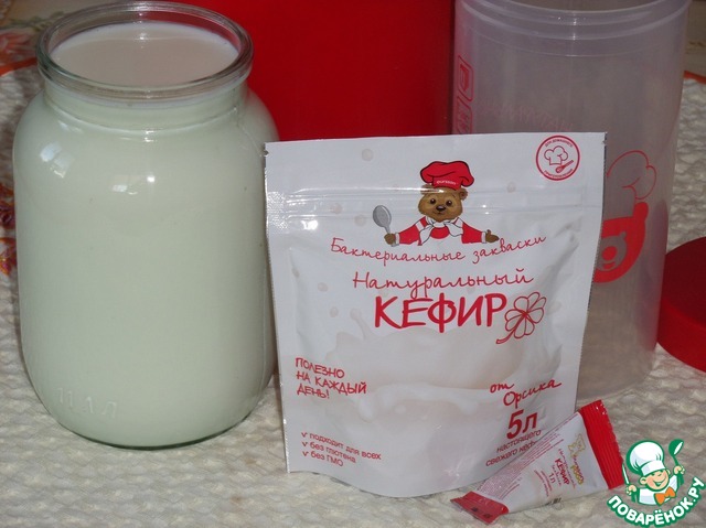 Сначала я готовлю кефир. Сделать это очень просто, используя бактериальные закваски "Натуральный кефир " и йогуртницу-термос от компании "OURSSON".