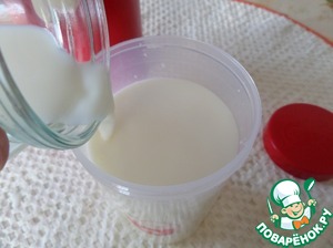 Банку для приготовления кефира стерилизуем. Молоко используем комнатной температуры. -