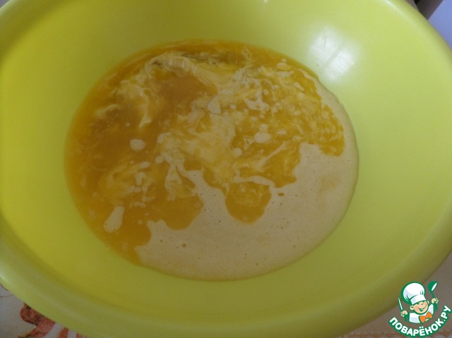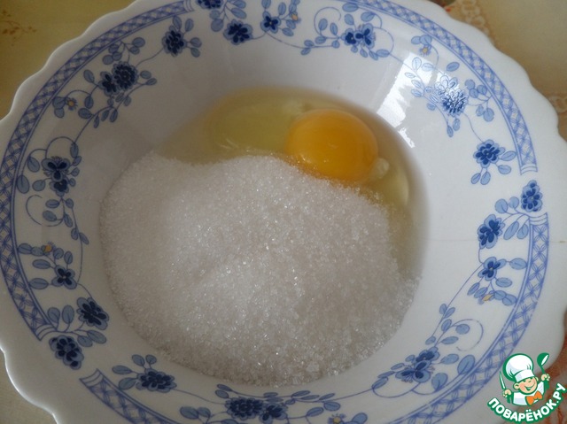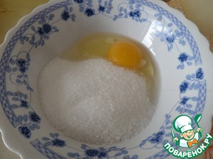 В чашечку разбила яйцо, добавила сахар. Хорошо взбила вилкой.