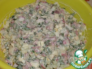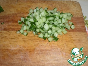 Добавила заправку в чашку к нарезанным ингредиентам.