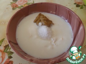 В чистую и сухую банку высыпаем пакетик закваски "Натуральный йогурт".