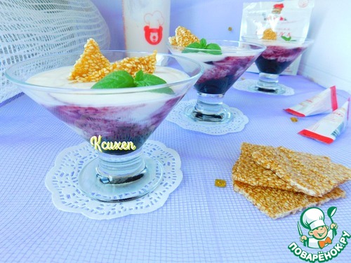 Чудесная ряженка домашнего приготовления-это вкусный и питательный напиток. А десерт на основе домашней ряженки, да ещё с кунжутными козинаками собственного приготовления-просто блаженство! Заходите в гости, Поварята! Буду угощать!