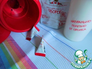 Для приготовления творога понадобится молоко и сливки комнатной t и 1 стик закваски Орсик для творога. Творог я готовила в йогуртнице-термосе ТМ OURSSON. Закваску, сливки и молоко смешиваем в стакане для приготовления творога. Отдельно доводим до кипения достаточное количество воды. Внутрь йогуртницы-термоса заливаем только что вскипевшую воду, далее устанавливаем держатель для стакана и сам стакан. Закрываем термос крушкой и оставляем в тёплом месте для сквашивания творога на 8-10 часов.
