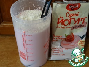 - Йогурт ( готовый из сухой смеси от Oursson, клубничный) — 400 мл