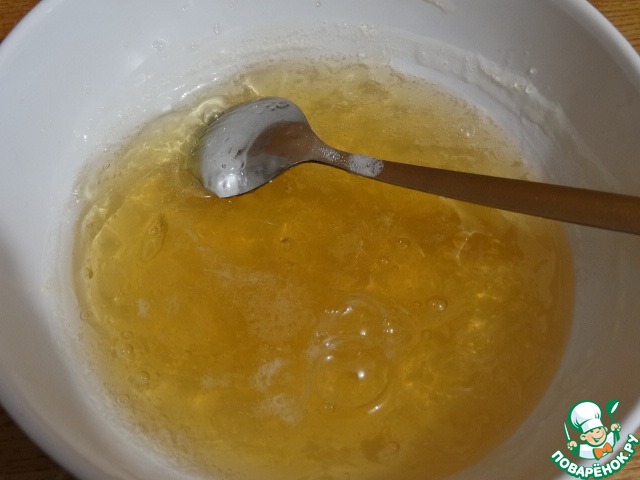 Желатин заливаем холодной кипяченой водой ( 200 мл) и оставляем для набухания. Затем прогреваем до полного растворения, но не кипятим.
