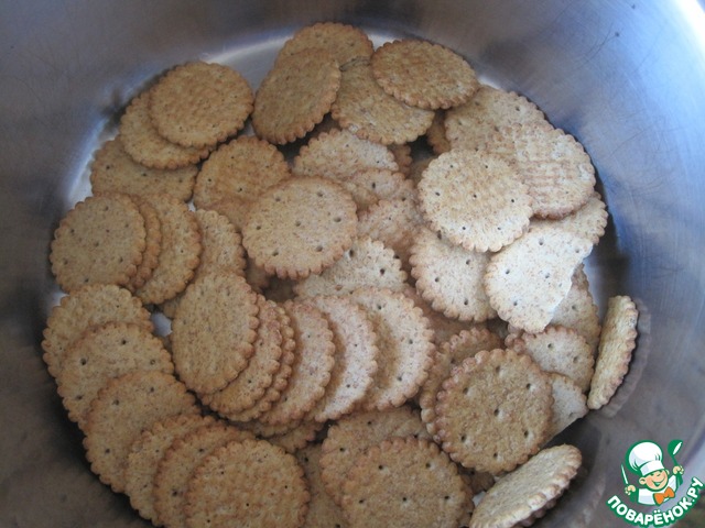 Основание готовлю из крекера (часть оставляю для украшения), но можно приготовить любой другой бисквит на ваш вкус.