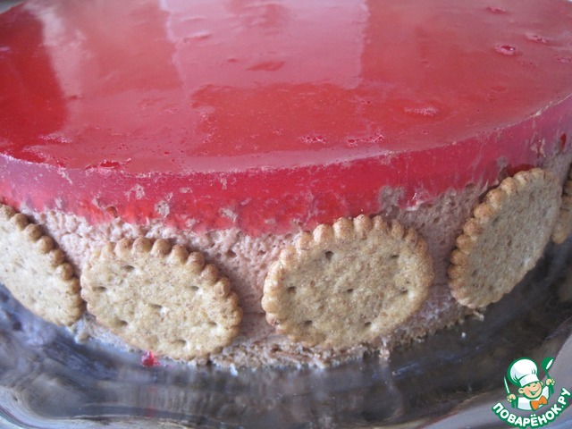 Удаляем кольцо, на боковые стороны приклеиваем крекер. Он хорошо приклеивается к нежному муссу.