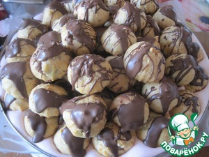 Третий слой профитролей, поливаем растопленным шоколадом.