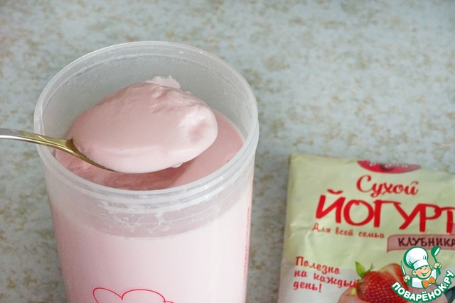 Накануне приготовим йогурт. Я использую для приготовления уникальную закваску Orsik, которая называется "Сухой йогурт".