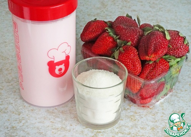 Клубнику помыть, оборвать чашелистики, нарезать произвольно. Положить в миску, добавить сахар.
