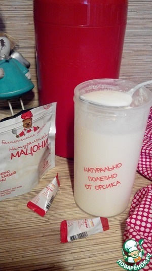 Молоко смешиваем с закваской, тщательно размешиваем и ставим в теплое место. Я люблю кисломолочку погуще, поэтому ставлю на ночь. Утром чудесное густое мацони готово, убираем его в холодильник до вечера... -