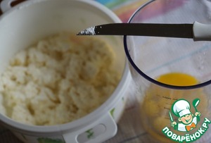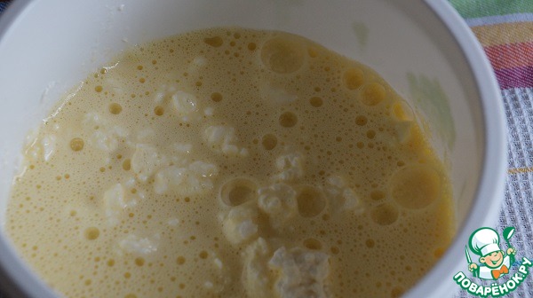 Сложили творог и яйца и пробили их блендером в течении 5-7 минут.