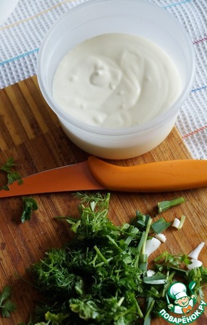 В одну нарезала зелень. У меня была петрушка, кинза, укроп и веточка молодого чеснока.