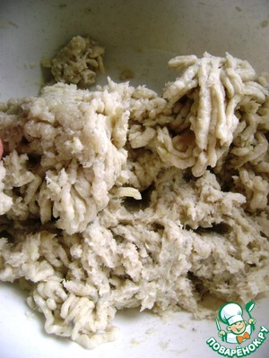 Посыпать перцем, посолить, добавить яйцо и сельдерей. Тщательно вымешать фарш.