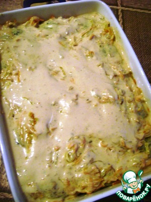 Залить соусом. Вернуть в духовку и готовить при 180 градусах минут 15 до румяной корочки.