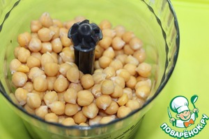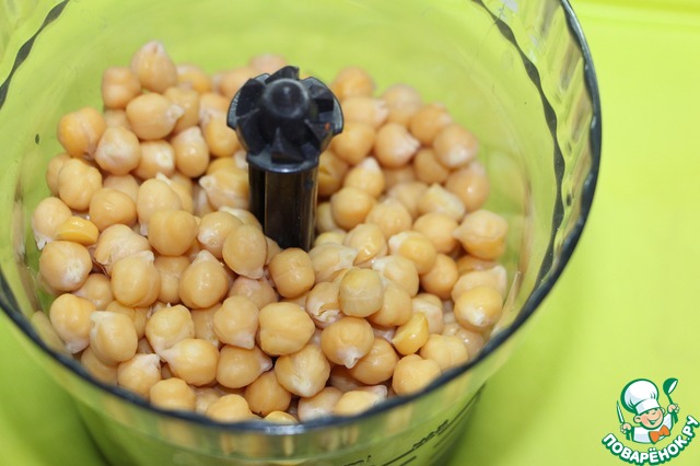Готовый нут откинуть на дуршлаг, дать отвару стечь. Поместить в блендер, перемолоть в крошку.