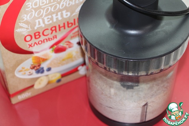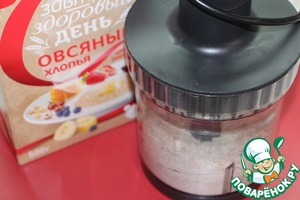 Смешать пшеничную муку, молотые хлопья, разрыхлитель, сахар, добавить воду и растительное масло, замесить вязкое...