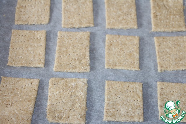 Переложить заготовки для хлебцев на противень, застеленный бумагой для выпечки. Наколоть их вилкой. Выпекать в разогретой до 200 градусов духовке 15 минут.