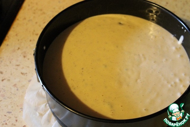 И вылить в форму с остывшим коржом. Выпекать при температуре 160 градусов, 1 час.