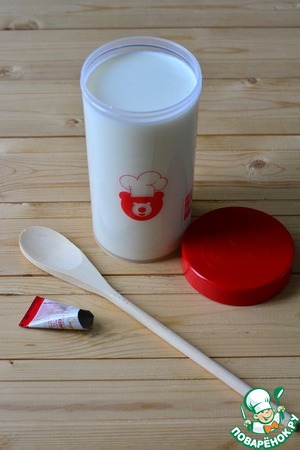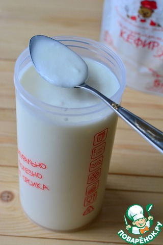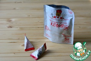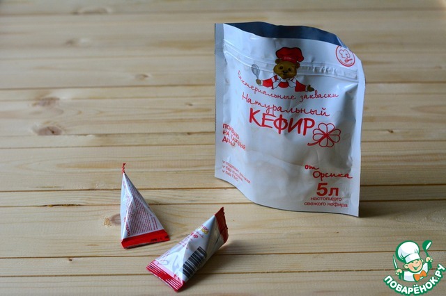 Итак, для начала приготовим кефир. Один маленький пакетик закваски рассчитан на один литр вкуснейшего натурального кефира.