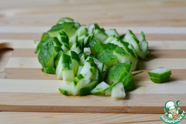 Займемся приготовлением окрошки. Огурцы нарезать кубиком.