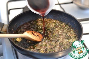 Добавить Бальзамик и постоянно мешая, доводим смесь до слегка густого состояния. -