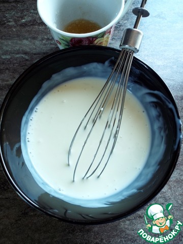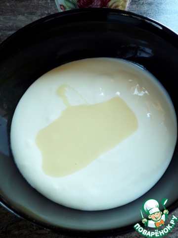Желатин замочить в воде (2 ст. л.). В йогурт добавить сгущенное молоко.