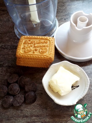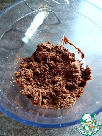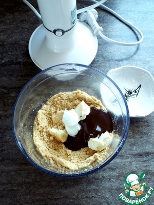 При помощи блендера измельчить печенье в крошку. Добавить мягкое масло и растопленный шоколад.