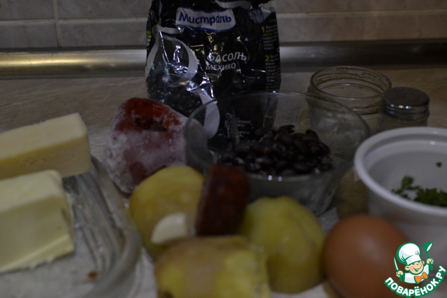 Продукты, которые нам понадобятся. Фасоль предварительно замочена и сварена.