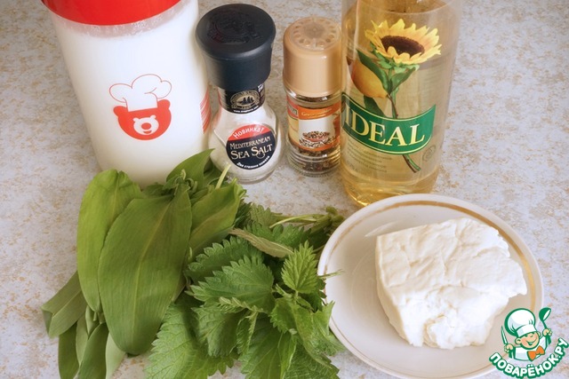 Сыр натираем на средней терке или разминаем вилкой. Добавляем к сыру йогурт, черемшу, крапиву. Перемешиваем, добавляем по вкусу свежесмолотый перец и растительное масло.