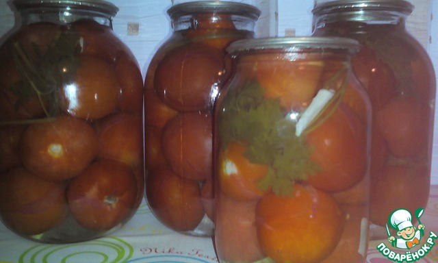 Это единственные помидоры, которые я консервирую в 3-х л банках, так как они съедаются мгновенно. И рассол выпивается...