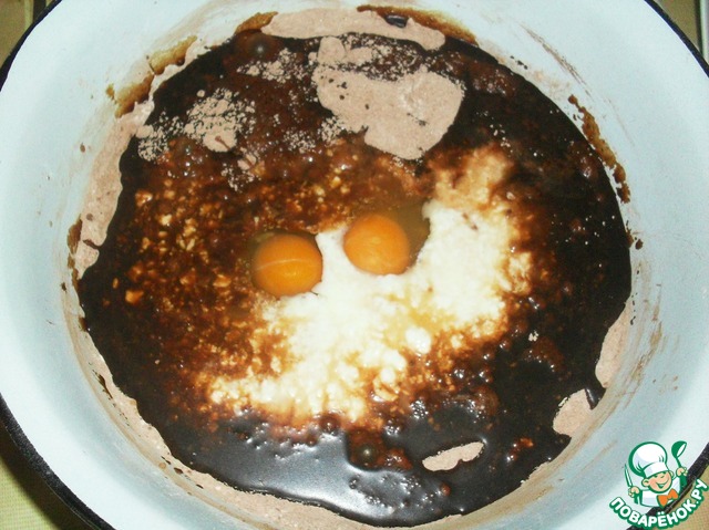 В большой миске смешайте муку, сахар, какао, соду, разрыхлитель и соль. В центре сделайте ямку.