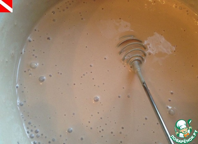 • Молоко с желатином подогреть на водяной бане / распустить в микроволновой печи, процедить через сито. Смешать с остывшей молочной смесью.