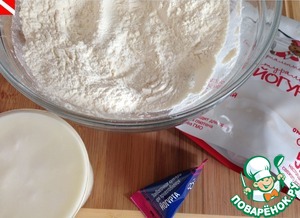 Теперь такой ньюанс - муки может быть использовано чуть больше, либо чуть меньше, что называется "сколько возьмет муки" - сама ненавижу эту фразу в рецептах, но здесь все зависит от жирности вашего йогурта. В этот раз у меня ушло 1,5 стакана.