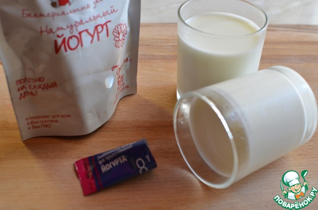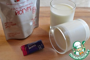 Приготовим йогурт с применением закваски от Орсика. Все довольно быстро и просто. Берем молоко комнатной температуры- 1 литр, у меня домашнее парное! Высыпаем в молоко сухую зкваску "Йогурт", хорошо перемешиваем венчиком, разливаем по стаканчикам и ставим в йогуртницу на 6-10 часов. После чего йогурт охлаждаем в холодильнике. Йогурт готов! Получился очень густой и очень вкусный!