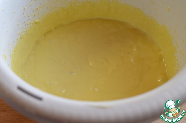 И еще раз хорошо взбиваем-перемешиваем, масса должна получится как густая сметана. Если тесто вышло жидкое-добавьте муки, если сильно густое добавьте немного йогурта или молока.