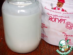 В чашу мультиварки налить молоко комнатной температуры, высыпать бактериальную закваску натуральный йогурт от Орсика. Молочную смесь тщательно перемешать сухой, чистой ложкой в течении 2-3 минут до полного растворения закваски.