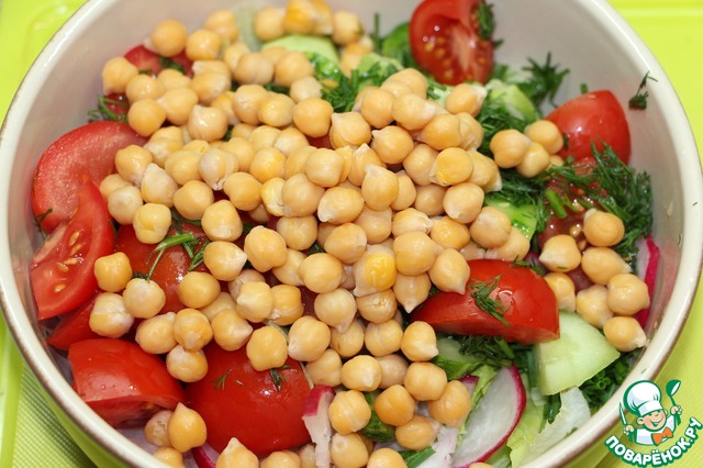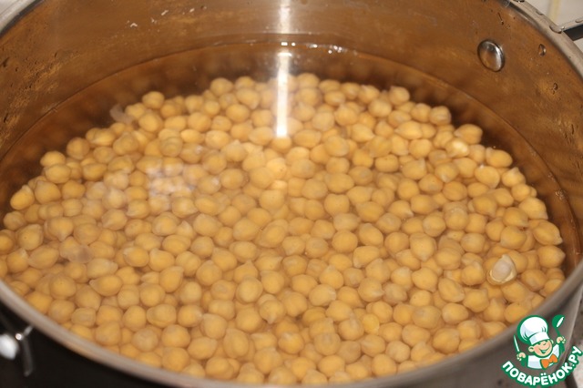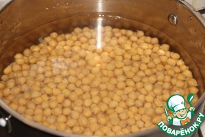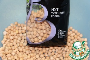 Затем отварить согласно инструкции на упаковке, воду слить, нут остудить.